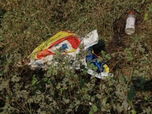 बोरा में अवशेष मांस सड़क किनारे फेका गया है दुर्गंध से राह गिर परेशान