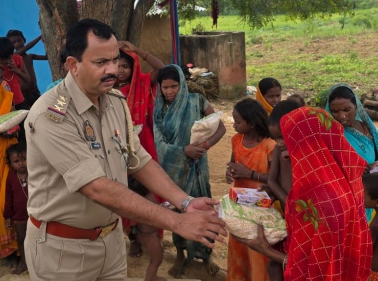 विंढमगंज थाना प्रभारी निरीक्षक चंद्रशेखर सिंह अपने दल के साथ आदिवासी गरीब परिवारों के बीच पहुँचकर मनाई दीपावली