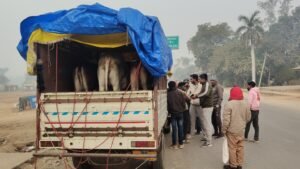 इसी क्रम में लगभग एक घंटे बाद गौरक्षक सदस्यों द्वारा एक अन्य वाहन टाटा मैजिक को भी रोका गया। जांच के दौरान उसमें भी तीन गाय पाई गईं। पशु-चिकित्सक डॉ. तरुण रवि द्वारा गायों की जांच की गई, जिसमें बताया गया कि दो गाय दुधारू थीं, एक गाय गर्भवती थी, जबकि शेष गाय सामान्य अवस्था में थीं, जिन्हें गौकशी के उद्देश्य से ले जाया जा रहा था।थाना प्रभारी ने बताया कि गायों से भरे दोनों वाहनों को कब्जे में ले लिया गया है तथा फरार चालकों की तलाश की जा रही है। मामले में संबंधित धाराओं में मुकदमा दर्ज कर विधिक व कानूनी कार्रवाई की जा रही है।