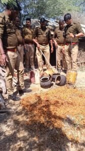 आबकारी विभाग की छापेमारी, 40 लीटर कच्ची शराब और 350 किलो लहन बरामद,
