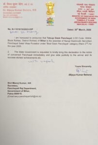 पटना/रोहतास। बिहार के रोहतास जिले की तेलकप ग्राम पंचायत (एलजीडी कोड: 99904) को वर्ष 2025 के लिए ‘सर्वश्रेष्ठ ग्राम पंचायत’ श्रेणी में द्वितीय स्थान प्राप्त करते हुए प्रतिष्ठित नानाजी देशमुख सर्वोत्तम पंचायत सतत विकास पुरस्कार से सम्मानित किया गया है। इस उपलब्धि से पूरे क्षेत्र में उत्साह का माहौल है।इस सफलता का श्रेय पंचायत की मुखिया अनिता टोप्पो को दिया जा रहा है, जिन्होंने अपनी मेहनत, लगन और कुशल नेतृत्व के दम पर पंचायत को इस मुकाम तक पहुंचाया। उनके नेतृत्व में पंचायत में स्वच्छता, विकास कार्यों और जनभागीदारी को नई मजबूती मिली, जिसके परिणामस्वरूप यह उपलब्धि हासिल हुई।सम्मान की घोषणा के बाद मुखिया अनिता टोप्पो को बधाई देने के लिए बड़ी संख्या में पंचायत के लोग उनके आवास और कार्यालय पहुंच रहे हैं। ग्रामीणों में खुशी का माहौल है और लोग उन्हें फूल-मालाओं के साथ सम्मानित कर रहे हैं।